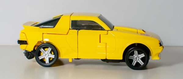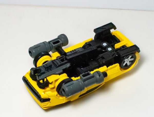 Much like the figure itself, there’s enough going on here to make this feel like a Deluxe-level transformation. It’s also not a straight copy of Masterpiece Bumblebee, aside from the legs. I’d say the most challenging part of it is getting the panels his car mode’s made out of to squeeze and pop together securely, but by transformation number three or so, I’d figured out a good sequence to line them all up where it wasn’t a real struggle. Aside from his size, the other major controversy with this tooling is that the transformation also involves partsforming, in that Hubcap’s backpack shield needs to be popped off, and placed on the back of the car in a different configuration, with no way to leave it on during the transformation.