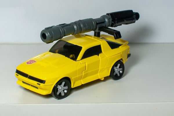 Another way of making up for his small size is his giant, multipart accessory, in the form of a big, deconstructable bazooka. The funny thing is, this is specifically based on a giant gun Cliffjumper used in the original cartoon’s pilot miniseries…