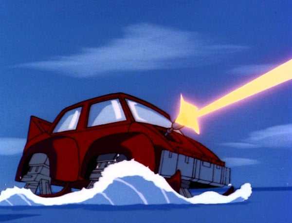 …unlocking a rocket-powered skiing car mode, loosely based on another Cliffjumper moment from Dinobot Island.