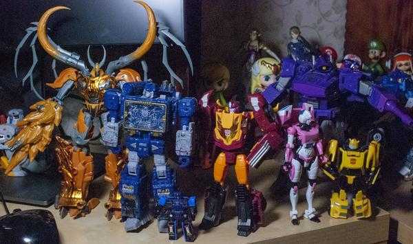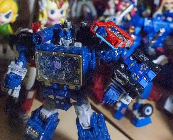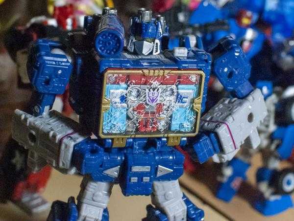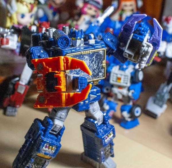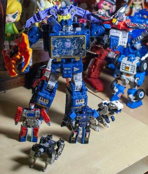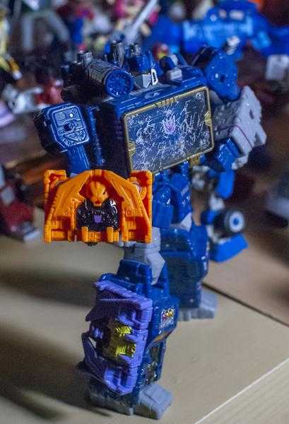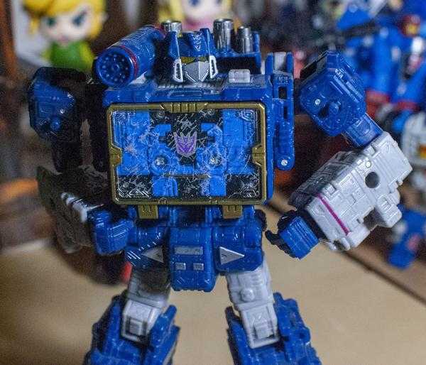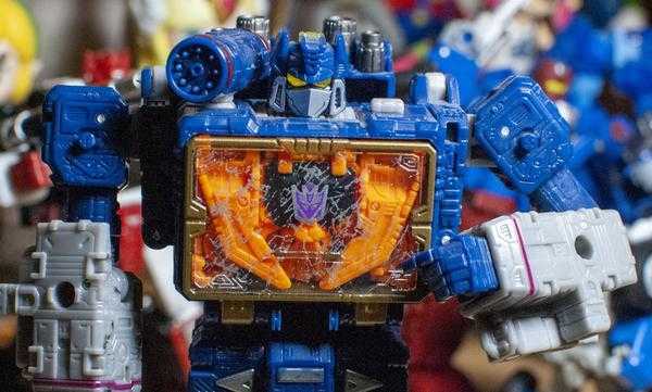 Rumble’s colors blend decently with Soundwave’s, though Knok’s definitely stand out against the dark blue.