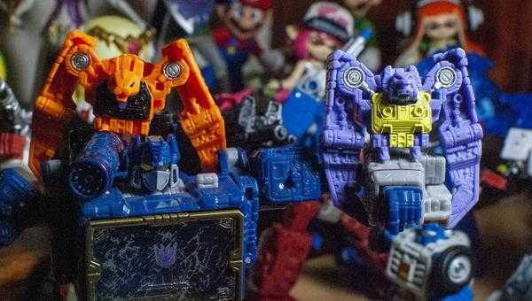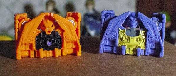 The other two characters in the set, Knok and Skar (the two little guys at the bottom of the above pic), aren’t actually usually associated with Soundwave. Instead, they’re the Powermaster partners of the traitorous G1 faction-swapper Doubledealer (the big robot in the picture), each transforming into engines that pop into him and unlock his two alternate modes. There’s a new version of Doubledealer coming out in Earthrise as a Leader-class figure, which will include space for these two characters with their re-invented cassette modes to combine with him again, with this set being a separate way to get them out. I don’t personally plan on getting Doubledealer, so these are just additional Soundwave minions to me.