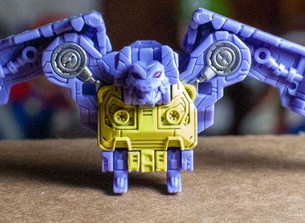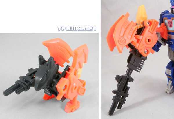 This actually looks pretty cool, even if their bat faces are still visible. Plus, it restores Wingthing’s original G1 toy function of specifically changing into a weapon for Soundwave.
