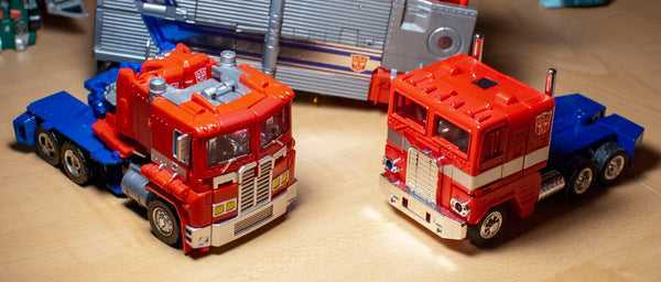 For the last few years, Takara’s been taking Generations figures meant for a western release, and excessively repainting and retooling them into homages to older, more obscure, often Japan-only stuff (see: God Ginrai, Convobat, Big Powered, Greatshot and the Seacons, among others). These retools are often interesting in how they repurpose unrelated figures into becoming something totally different, but also have a reputation as having dicey engineering, due to the base figures not being meant to handle what they’re been retooled into. In this case, this new version of Star Convoy is an extensive reworking of the Leader-class Evolution Optimus Prime figure from 2018’s Power of the Primes toyline (POTP) and while retooling Optimus into Another Optimus seems like a no-brainer, POTP Optimus had a totally different gimmick: He was a traditional G1 Truck-and-trailer Optimus, only his cab became a G1 Cartoon-accurate Orion Pax, then merged with the trailer to “evolve” into a G1 Cartoon-Accurate Optimus Prime. Naturally, the new Star Convoy had to incorporate this into its design somehow, and it gets clever with it. But more on that later.