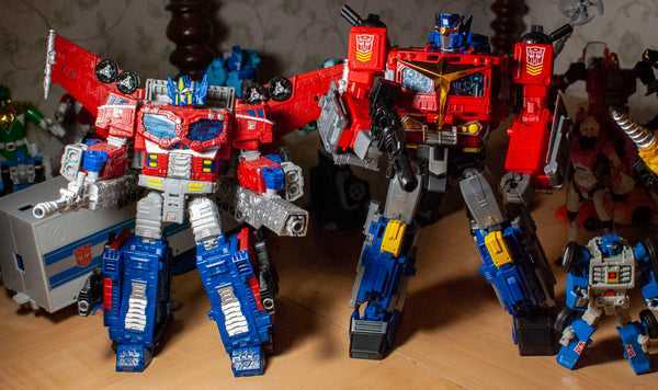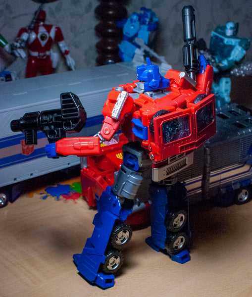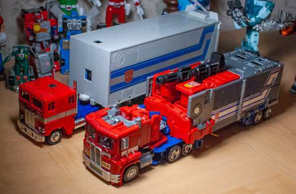 In 1991, Transformers may have been dead in the US, but it still had some life left in Japan. That year’s toyline was called Transformers: Return of Convoy, and aesthetically, was quite different from the classic Transformers we know. Most of the figures in the line had a very Japanese Super Robot aesthetic to them, like the kind of thing you’d see in a space-themed, Burning-Justice-powered kid’s mecha anime, or something the Power Rangers would pilot. At the center of the line was the Autobot’s leader, Star Convoy, a re-incarnation of Optimus Prime (Convoy’s the character’s name in G1 Japanese media.) A massive figure, he changed from a retro-space-truck, to a base for Micromasters (something else the line was full of), to a big, impressive super robot that looked like a cross between the Optimus we know and love, and a Gundam. Of course, like the big, colorful Super Robots he resembled, he had virtually no articulation to speak of, but he still looked big and cool, and even got a reissue in 2005.