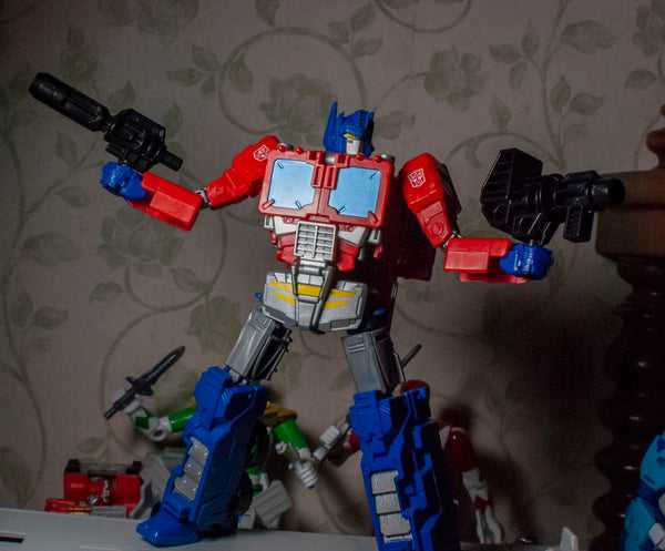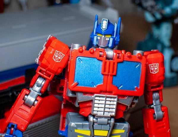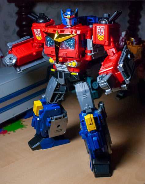 As far as justifying out-of-place gimmicks go, this is a clever one. This isn’t a strictly toy-accurate Optimus, though. This is more like the G1 toy filtered through an Anime Super Robot lens. Instead of being bulky and boxy, he’s slim and lithe, like a Shonen Anime protagonist, or, like a mid-stage Pokemon evolution, with Orion Pax as his first form and Regular Optimus as his final form.