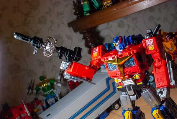 In terms of accessories, his Ion Blaster now looks proportionate to his body when you hold it. He can also still hold his Matrix with the same peg on the bottom, though you have to pop his torso out to retrieve it from behind his chest star and two sets of doors. There’s also a special attack mode meant for this version, called the “Big Bang Cannon,” where you split his gun in half, and insert the Matrix between the two parts, presumably empowering his weapon with the Matrix’s energy.