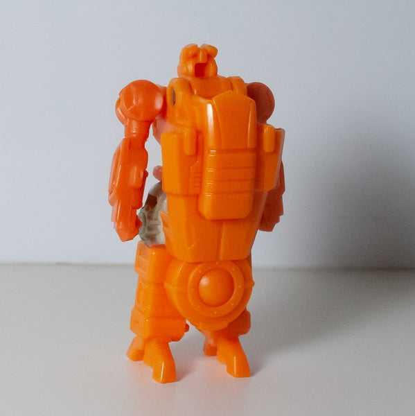 Naturally, he’s not the most articulated figure, thanks to his size, but he’s got more poseability than I expected. His shoulders are on unrestricted ball joints, letting him freely shake his fist in a way that combines well with his angry face nicely. He’s also got ball jointed hips, and, most surprisingly, a twistable waist, despite not needing it for his transformation. It’s not a lot, but good enough to get some decent poses out of him, and his oddly-shaped, clampy feet keep him stable in all of them, despite his backpack.