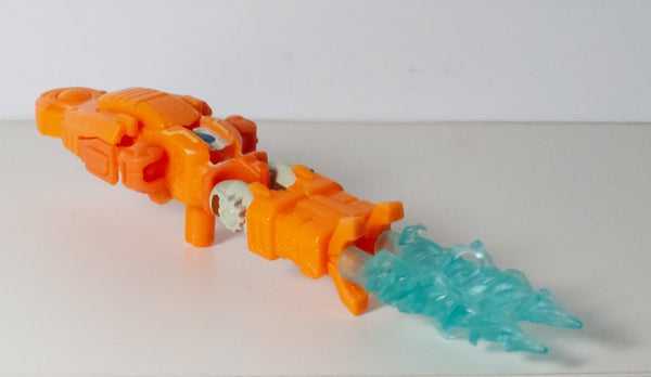 Speaking of that, he’s got two effect parts that you can mount on the end of this mode, transparent blue rubbery things that are made to look like energy blasts, but their shape and color make me think more of solid crystals instead. The fact that the connectors on the end let them be held in the hands of most Siege and Earthrise figures certainly helps.