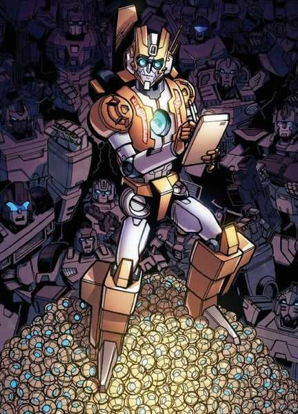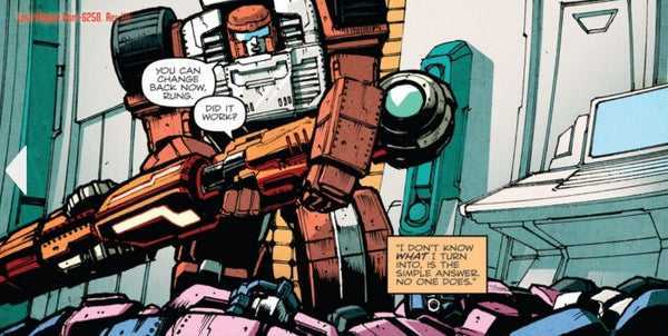 Rung was an original character, created by series author James Roberts, and made into a central member of the ship’s cast. He was, by Transformers standards, pretty unique: A psychologist to the traumatized Autobot warriors, who was mild-mannered, meek, peaceful, and a collector of model starships. He changed into a strange rod with a light on the end, of unknown purpose and use, even to himself, plus he had this odd quirk where people often forgot his name.