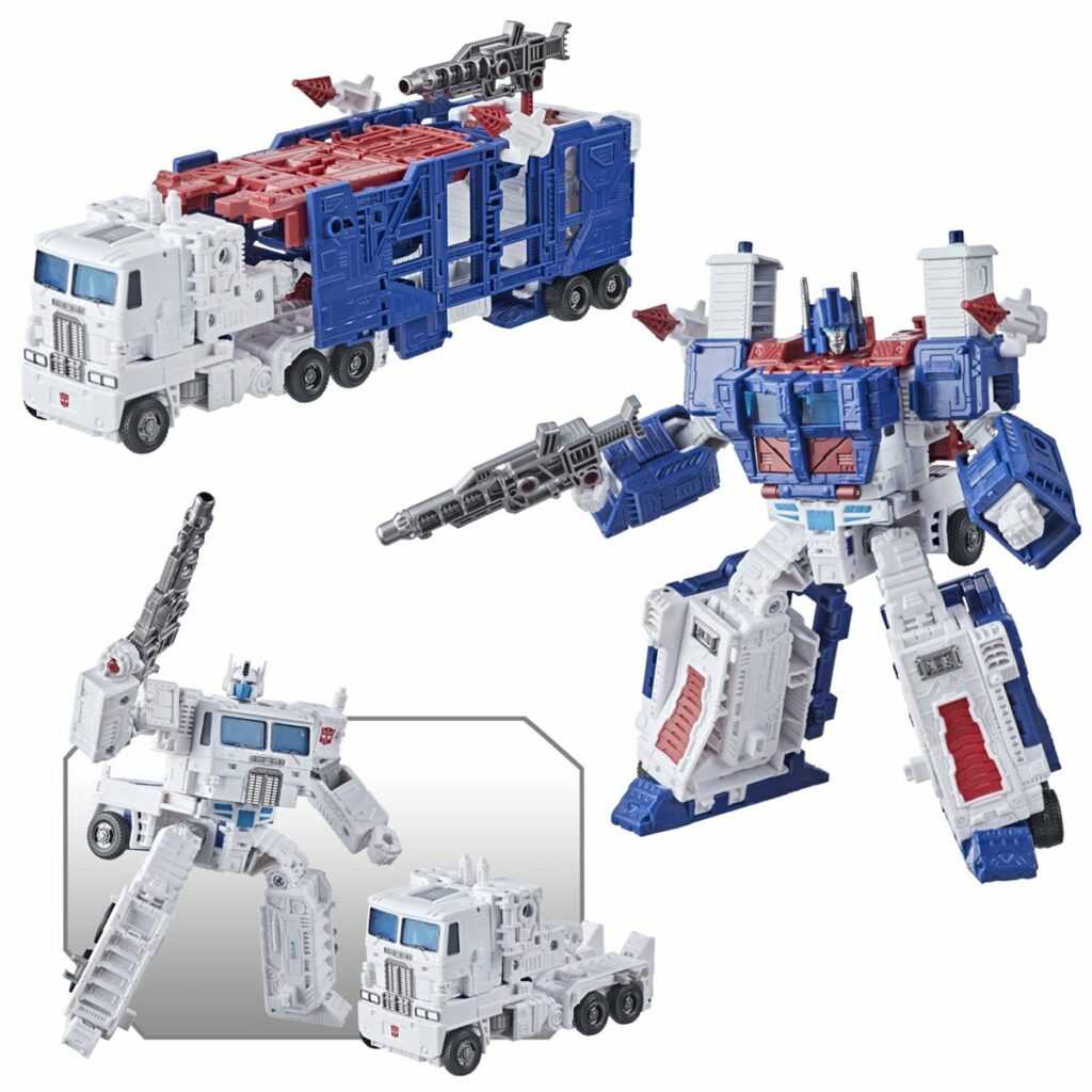 First, a history lesson: The original Ultra Magnus toy from Generation 1 had two parts to him: A transforming cab in front that was actually the original Optimus Prime figure in white and blue colors, and a car carrier trailer in the back. The smaller robot can transform and do his own thing, but he can also combine with his car carrier into a bigger super robot. For whatever reason, none of Ultra Magnus’s appearances in animation and comics throughout the 80s actually depicted his smaller robot mode, and he was always shown transforming straight from his cab mode to his bigger super robot mode. As a result, new Ultra Magnus toys come in two flavors: Robots that go straight from his vehicle form to his big robot form, without the smaller robot even existing (even the Masterpiece does this)….