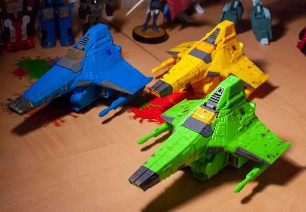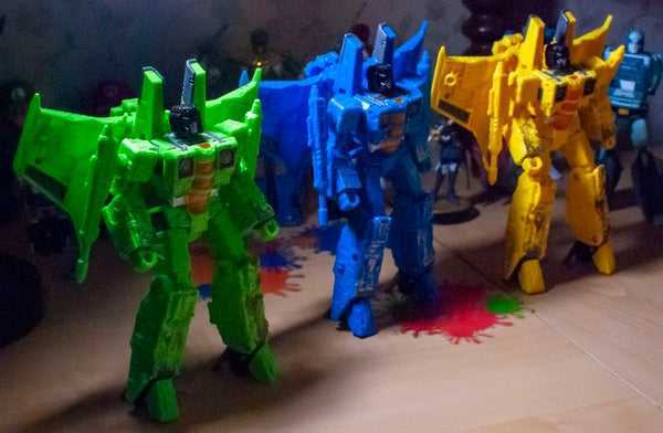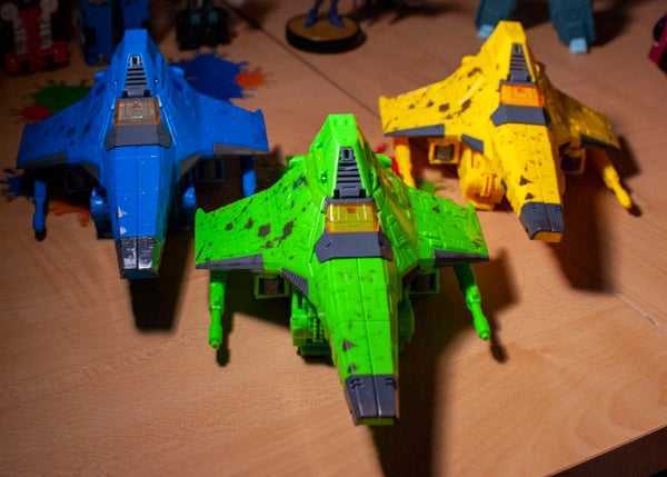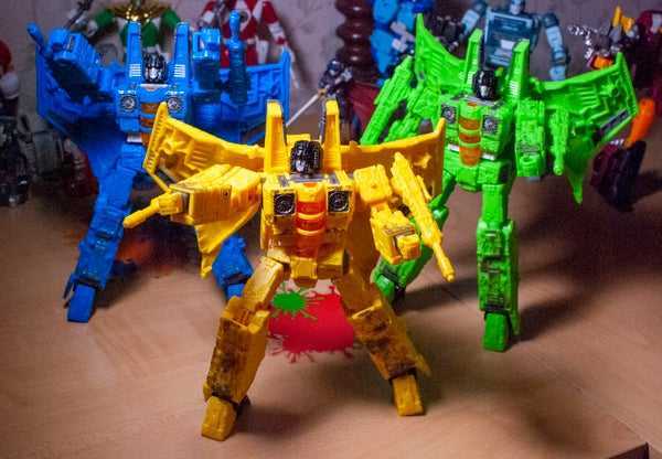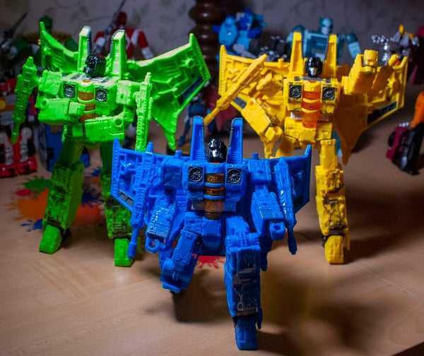 Way back in 1984, the creators of the original Transformers cartoon had a problem: The Decepticons were supposed to start the show as equal or greater in numbers to the Autobots, but the toyline had barely half the amount of villains as it did heroes. However, the toyline itself presented a solution: Since Starscream, Skywarp and Thundercracker were the same toy (and same animation model) in different colors, more color variants of them were created for the show, and used as villain crowd filler, and generic grunts. Called the Seekers in later media, these generics went unnamed, had no lines, and never did anything of real consequence in the show except be there to pad out the numbers. Over the years, though, some of these background seekers have been given names, personalities, roles in future stories, and actual figures by Hasbro and Takara.