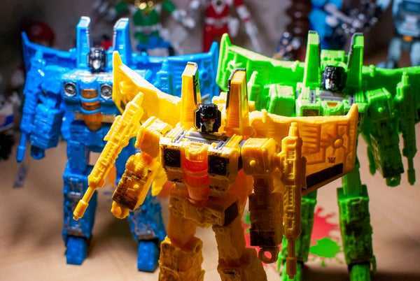Years later, the green one would get an identity as Acid Storm, as well as several toys (including a Masterpiece!), along with appearances in IDW’s comics and the Cyberverse TV show. The other two would eventually get names and identities as Ion Storm (the blue one) and Nova Storm (the yellow one), in a Transformers Collector’s Club Facebook Profile (long story), but no mainline toys, until Transformers: Siege.
