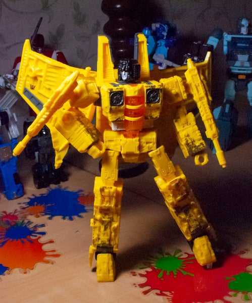 Nova Storm, (a girl according to the Transformers Card Game), is a sunny shade of yellow, and is often confused with the more orangey Sunstorm because of it.