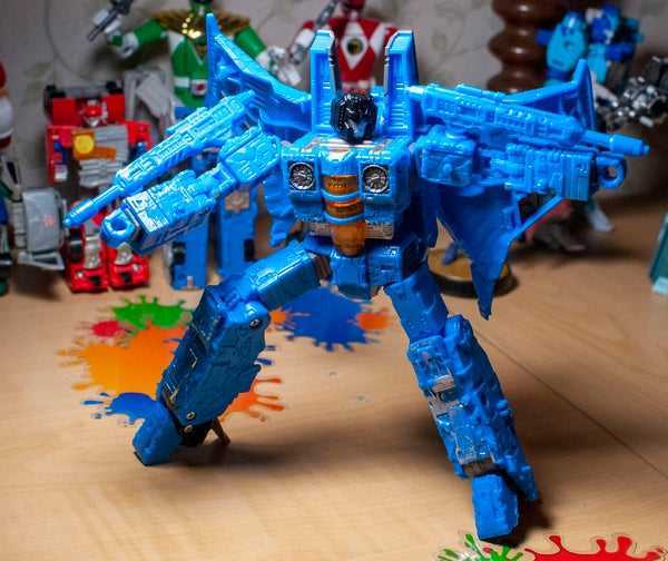Finally, Ion Storm’s a sky blue, and comes across as a less-decoed Thundercracker (though in person, I can attest that Thundercracker’s blue is brighter).