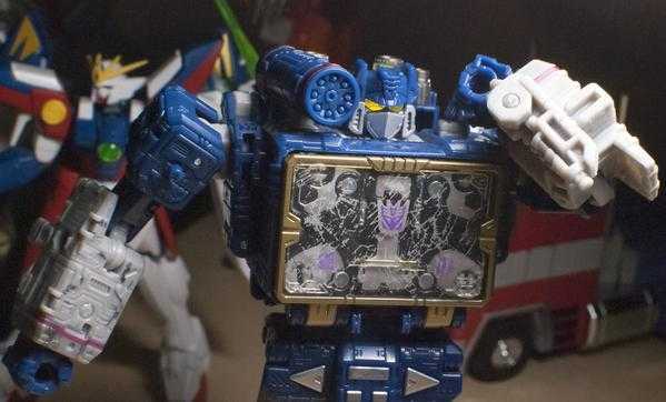 It’s a really nice sculpt. Soundwave’s design is really just a collection of rectangles, and on this figure, they made it into a sharp one. I particularly like his headsculpt, which is super cartoon-accurate, and is literally one of the faces that launched the franchise. Also, in a lovely bit of personality, his left hand is sculpted with a finger sticking out, so he can press the eject button on his shoulder, though you can also use it for plenty of other funny-looking poses.