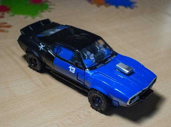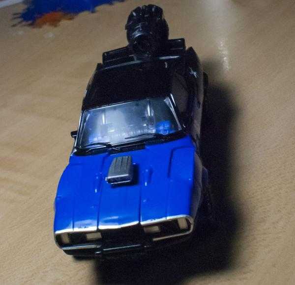 As per the movie, Dropkick changes into a muscle car with a tuned engine. I wish his wheels were painted, but aside from that, he’s still really well-painted, with a lot of nice silver, and details like painted headlights and a skull and crossbones decal. He’s also got nice clear windows.