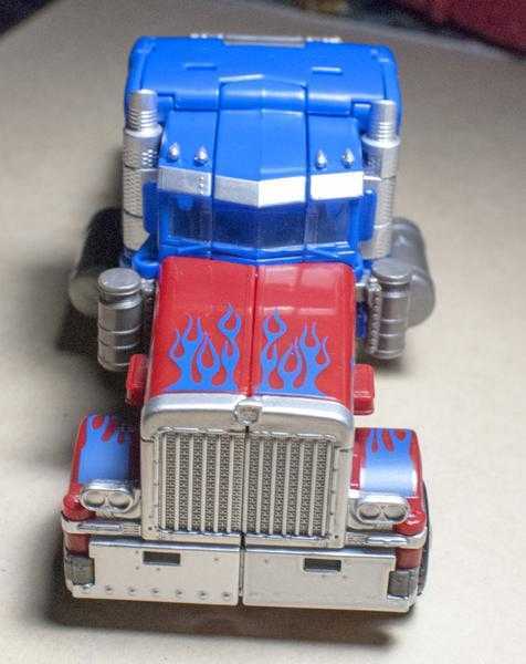 Not gonna lie, I expected this to be easier. A proper, movie-accurate transformation has been done before with this design, on the old Revenge of the Fallen Leader, the Hunt for the Decepticons Voyager, and on the recent Movie Masterpiece. By movie-accurate, I mean every part in one mode goes where it goes onscreen in the other mode, i.e. his chest windows become his truck windows. The problem with that is it makes for a really complicated transformation, and can sometimes compromise the overall look and quality of both modes. This version of Optimus has a more cheat-y transformation, (i.e. the windows on his chest aren’t his actual truck windows) which I regarded as a good thing, since it likely meant it would be simpler.