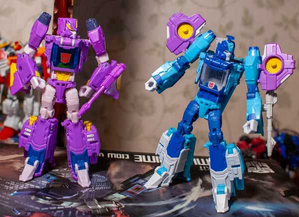In fact, you can easily remove the fans, and give them to most other iterations of the mold (though they’re a very loose fit on Arcee, and they don’t fit on Brainstorm, both thanks to retooled parts).