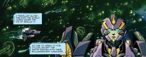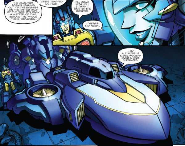 Nautica was created specifically for the IDW comics, and introduced during the Dark Cybertron crossover event, along with Windblade and Chromia, as part of a trio of female Transformers from the planet Caminus. She’d immediately migrate over to the cast of James Roberts’ critically-lauded More than Meets The Eye series, and become a central character of that story, and its sequel, Lost Light. She was an engineer and scientist, incredibly intelligent, pleasant and chipper, but often socially clueless. She struck a chord with readers, and quickly became a fan favorite in a series that was already a fan favorite. That popularity was enough to bring her back in the rebooted IDW continuity, as a xenobiologist/ambassador to other worlds.