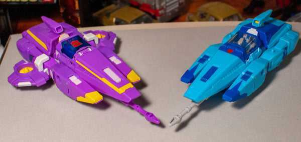 Pop them off, and it’s just Purple Blurr, complete with little antenna thingie uptop. Pop them on, and the drastically changed silhouette instantly scans not as a racer, but as a late-G1 pseudo-spaceship, which her altmode basically is. It’s not perfect, but it’s close enough. Of course, the biggest question is why a submarine/spacecraft hybrid would have an open cockpit, but hey, robots don’t need to breathe, right?