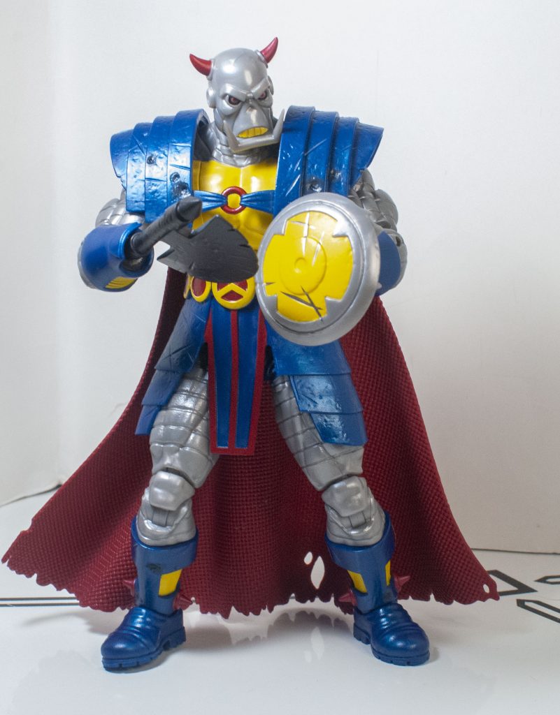 As for his outfit, it’s also lovingly colored beyond the blue, with more yellow and red accents, and a red cape. A bit of color I appreciate is some black scouring around the bullet holes in his shoulder armor. Like his sculpt, it manages to look and feel really complete, and really carefully considered.