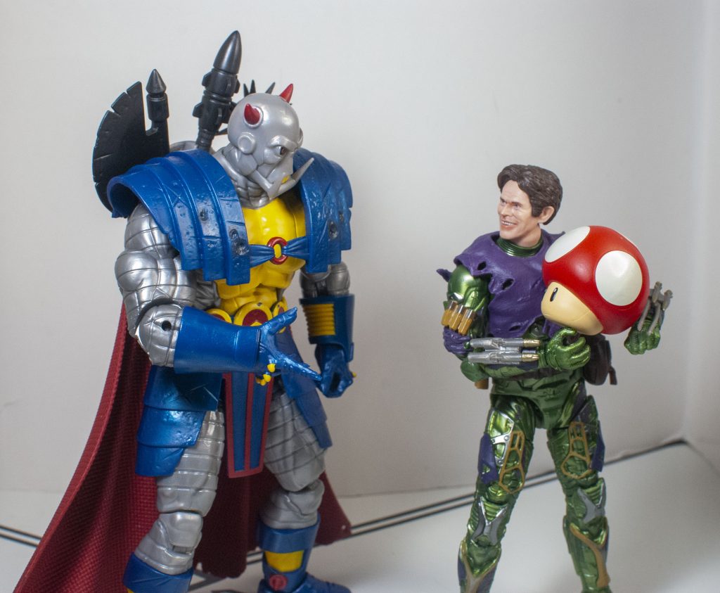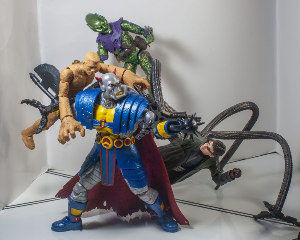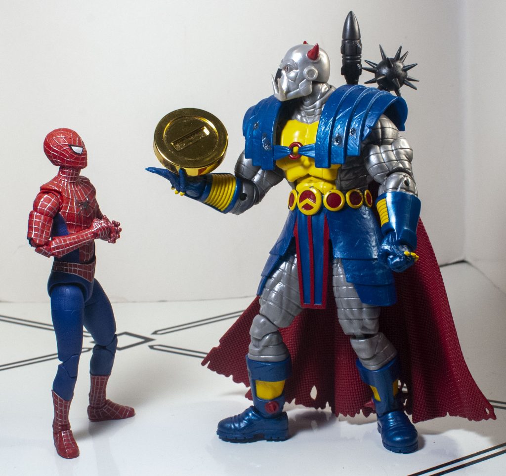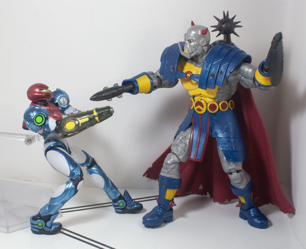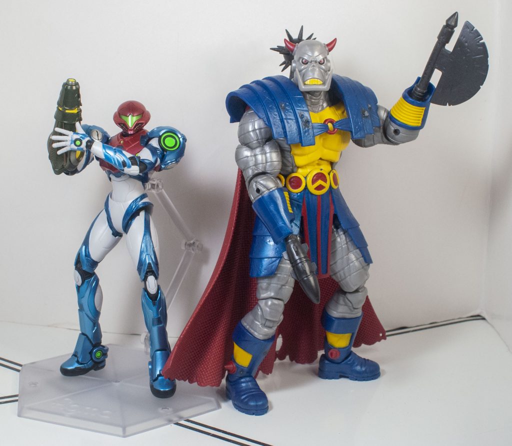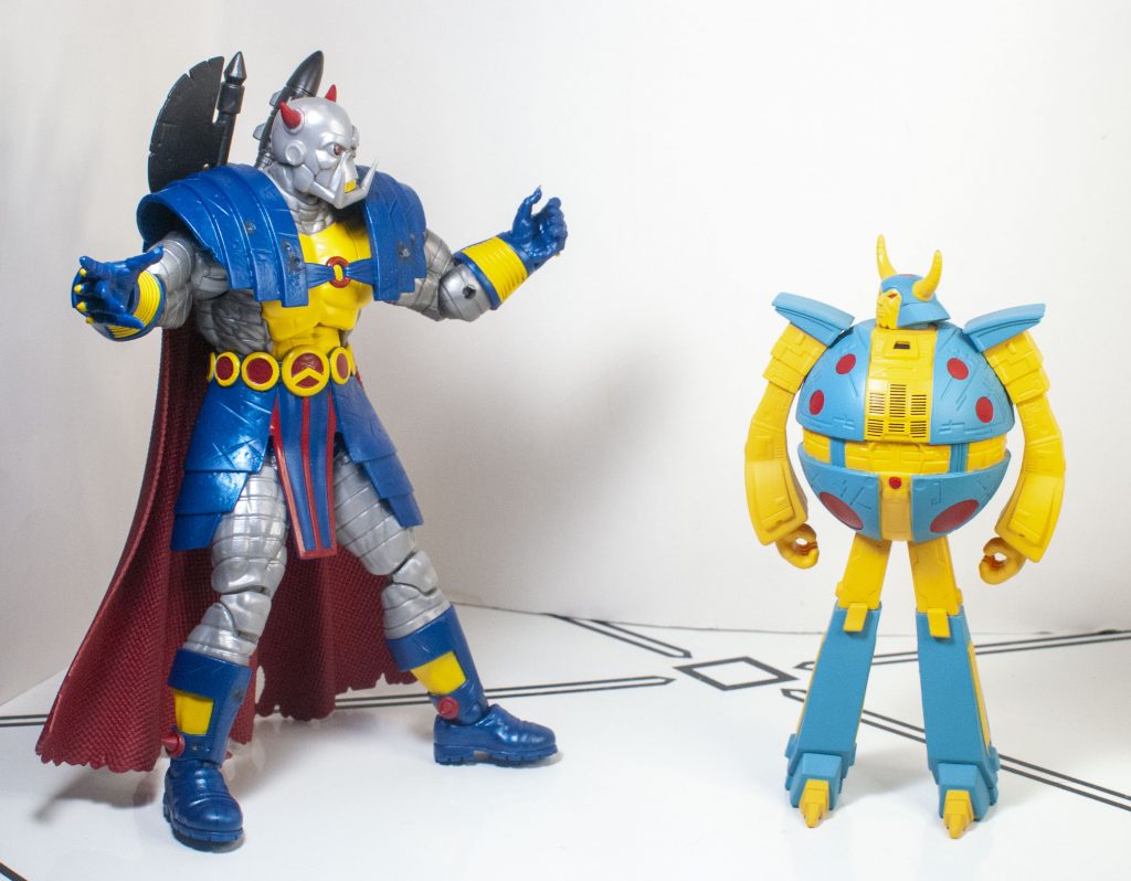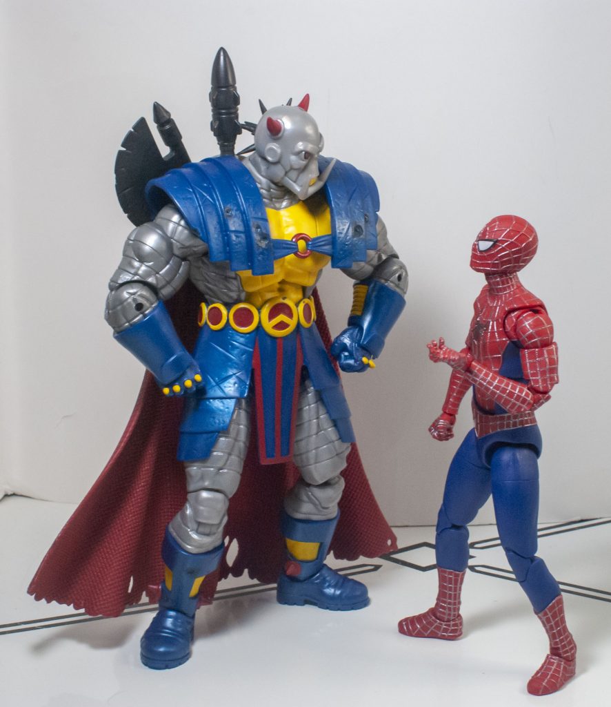 Meanwhile, before he arrived in the Marvel Universe, he was apparently shrunk down to human size (The Doctor, of Who fame, did it, or so I’ve read), so he *also* scales with the other 6-inch figures I have. Either way, he’s just the right size.