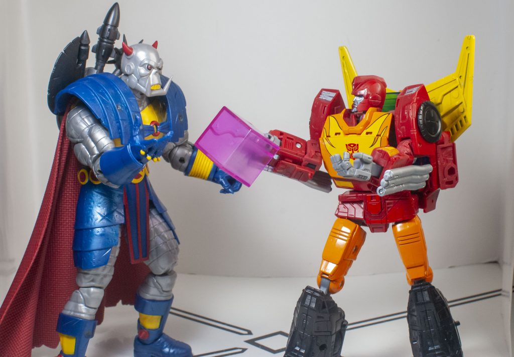 Death’s Head would show up in a lot of other books after that, get multiple solo series, and generally be a quiet cult favorite, though the odd situation around who owned the rights to the character meant he never showed up in Transformers stories again (with Decepticon bounty hunter Lockdown being invented as a replacement character), while during his Marvel appearances, Death’s Head couldn’t ever directly mention his Transformers adventures, either. That, plus his obscurity, means he’s not the type to get a ton of merchandise. But! He did get a brand-new Marvel Legends figure this year, which I thought was some kind of exclusive….but nope, it’s just casually up on Hasbro Pulse. Me, I found one at Gamestop, and couldn’t resist a shot at owning yet another obscure Transformers comics guy.
