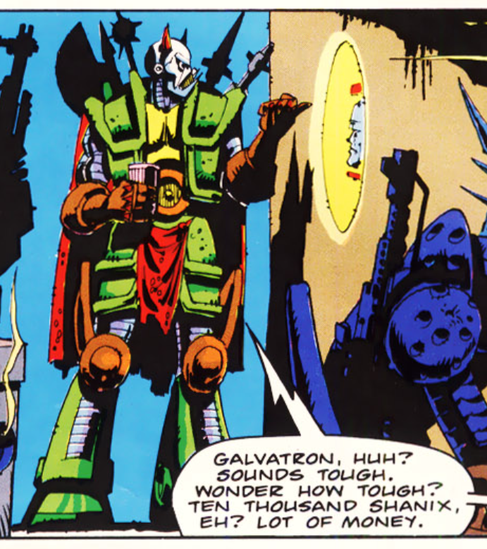 Death’s Head was created by Simon Furman and artist Geoff Senior, first appearing in 1986, in UK issue 113 (more issues meant way higher numbers). He wasn’t a Transformer, but he was a mechanical life form, and he worked as a bounty hunter (despite hating the term, preferring “freelance peacekeeping agent.”) He also ended nearly every short, clipped sentence of his on a question. To be honest, he was kind of an amoral, violent jerk, only really caring about money, and making sure he did his job well. Still, UK readers seemed to like him (or at least, the comic did a good job of pushing him), and he’d appear in multiple stories over the next two years, before getting thrown into a time portal, which would careen him across dimensions, sending him briefly to Marvel UK’s Doctor Who comics (they could just, like, do that back then, apparently), before he wound up in the mainline Marvel Comics 616 universe.