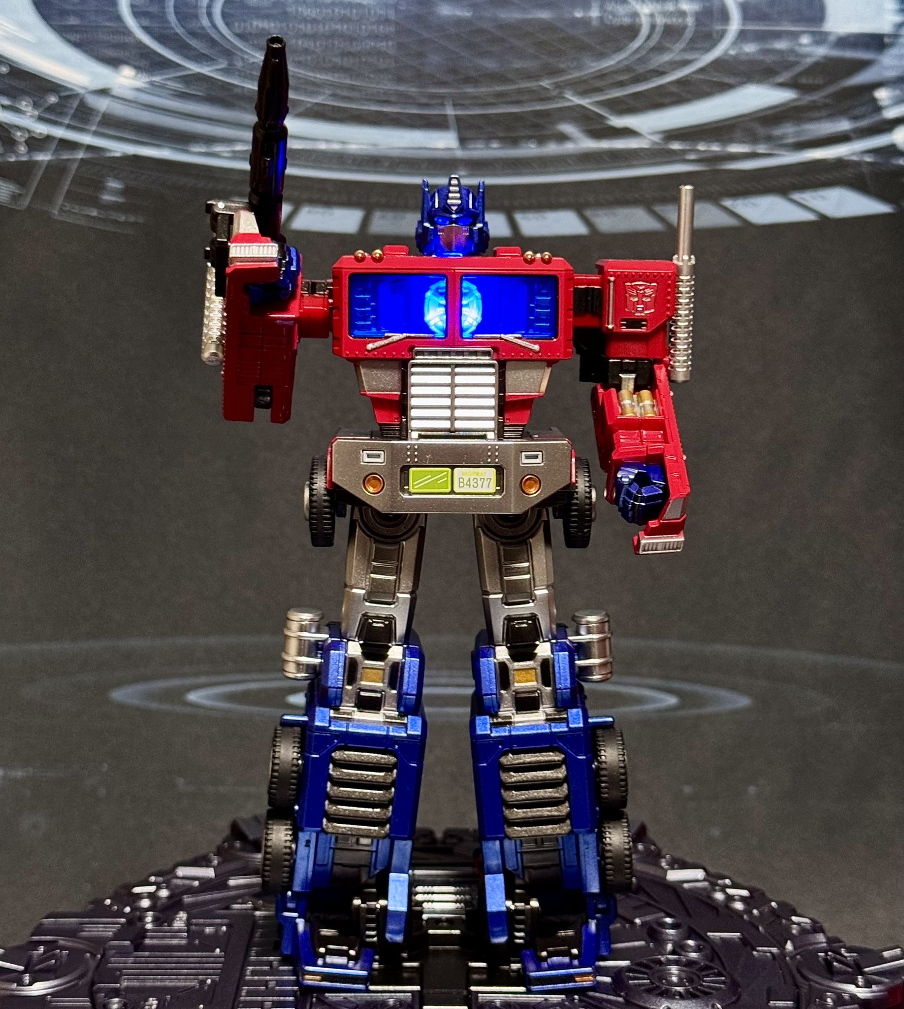 Coming to us via Twitter users @Kazu1325haru and @gLYjzoShlTvAN0g we have or first in-hand images and videos of the Takara Tomy Karakuri Statue KS-01 Optimus Prime for your viewing pleasure! This is a new “statue” that you can press the button on the pedestal, and Optimus Prime will transform automatically from alt mode to robot mode and vice versa. It features light effects and phrases recorded by Tesho Genda, the original G1 Optimus Prime voice in Japan and Peter Cullen too. A very unique Optimus Prime item for sure. See the mirrored images and videos after the jump and then sound off » Continue Reading.