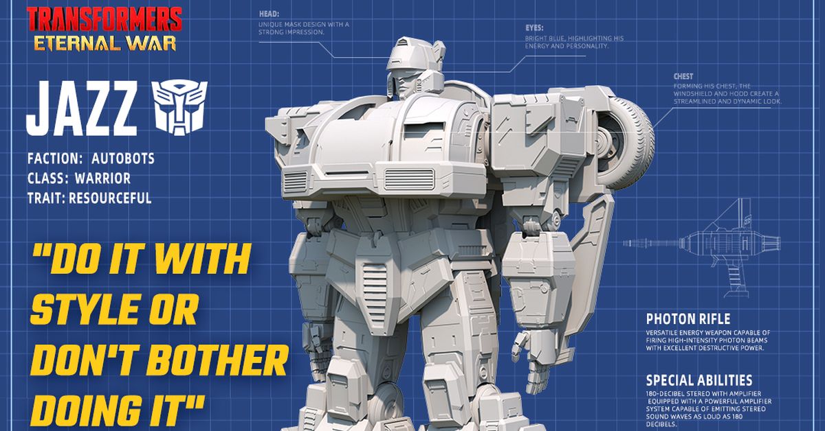 Wanda Cinemas Games Transformers Eternal War G1 RPG Adventure mobile game keeps flying with a new preview up on the official @TFEternalWar SNS Development Log for the Jazz Autobot Warrior character. What is said to include “Stories Told and Untold” remains to be seen. Read on for the new update and preview. [Development Log – Jazz] Having a tough time? Currently under some self-doubt? Hey, since we started, just remember: “Do it with style, or don’t do it at all. ” Don’t forget to meet the coolest dancer on Cybertron! <br> See more at https://tformers.com/54508 <br>