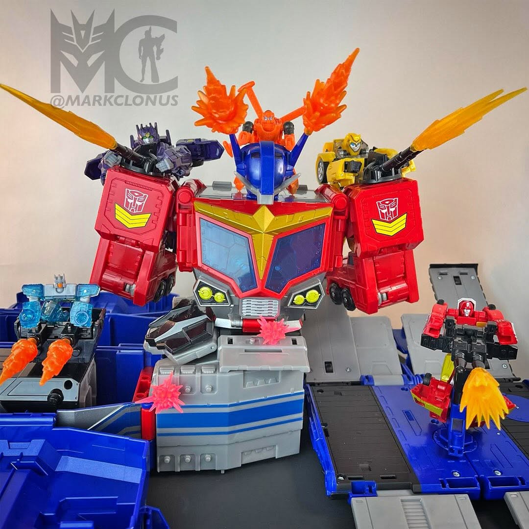 Coming to us thanks to Mark “Markclonus” Maher, via his Instagram account, we have our second gallery of official in-hand images of the new Transformers Age Of The Primes Titan Class Star Optimus. We have new images of Star Optimus Prime next to Solus Prime, Prima Prime and Megatronus Prime in robot mode and some key shots of his base mode and how the Microtrailer interacts with the new Micromaster Hot Rod. We are sure you will be pleased with the playability and references to the original toy. See the mirrored images after the break as well as Mark’s comments » Continue Reading.