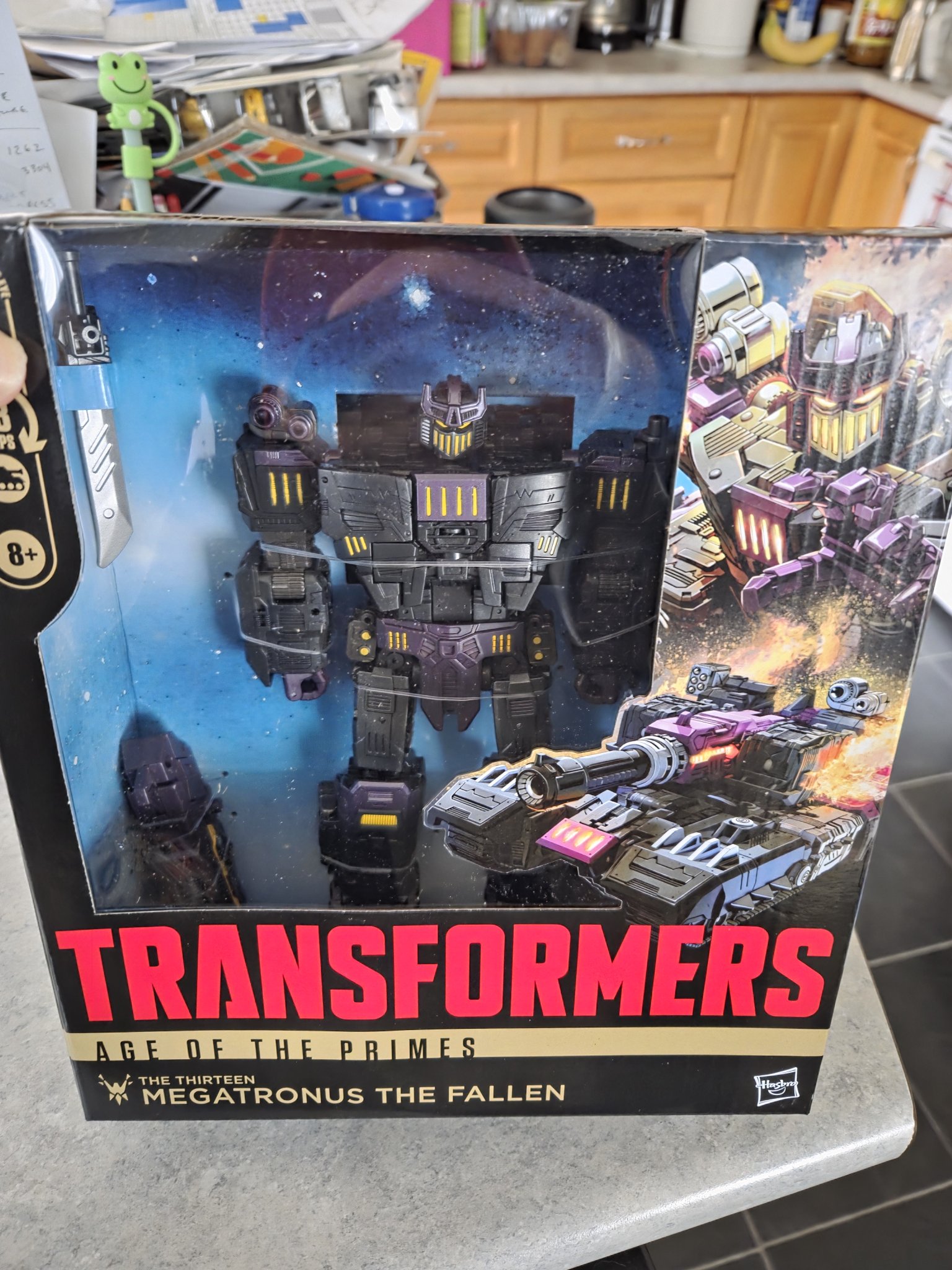 Thanks to friend site Cybertron.ca and 2005 Boards members Darkredwolf and VAMPSLAY we can confirm that the new Transformers Age Of The Primes Wave 1 Leader is out in Canada. Age Of The Primes Megatronus The Fallen and G2 Grimlock (with Wheelie) have showed up at several Gamestop stores in multiple provinces. Happy hunting!