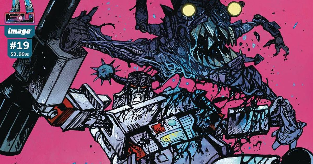 IMAGE COMICS TRANSFORMERS #19 CVR A JOHNSON & SPICER Release Date: Apr 09, 2025 Retail Price: $3.99 (W) Daniel Warren Johnson (A) Ludo Lullabi (CA) Daniel Warren Johnson (A/CA) Mike Spicer **NEW STORY ARC **WHAT HAPPENED TO MEGATRON? The story that every fan has demanded begins RIGHT HERE. <br> See more at https://tformers.com/54561 <br>