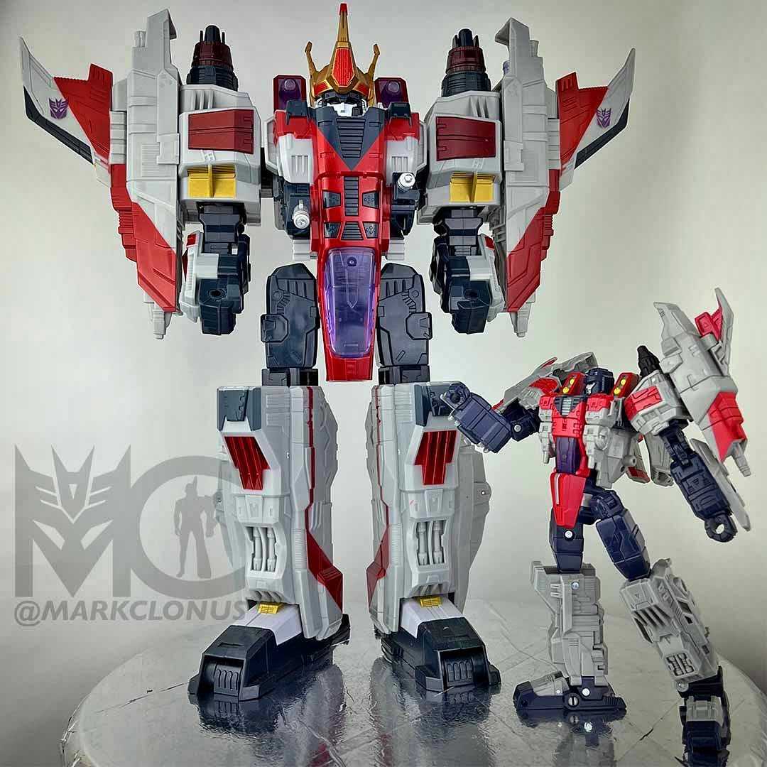 As you can see from the pics, I had to bust out my old Super Supreme King Starscream to get a good comparison. I feel like this toy can now be used as like a titan army drone that SS commands. Unfortunately the crown is a bit large 😂 but hopefully our team can find a way to release a new crown accessory for this mighty sinister evil decepticon.