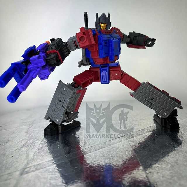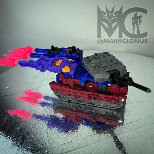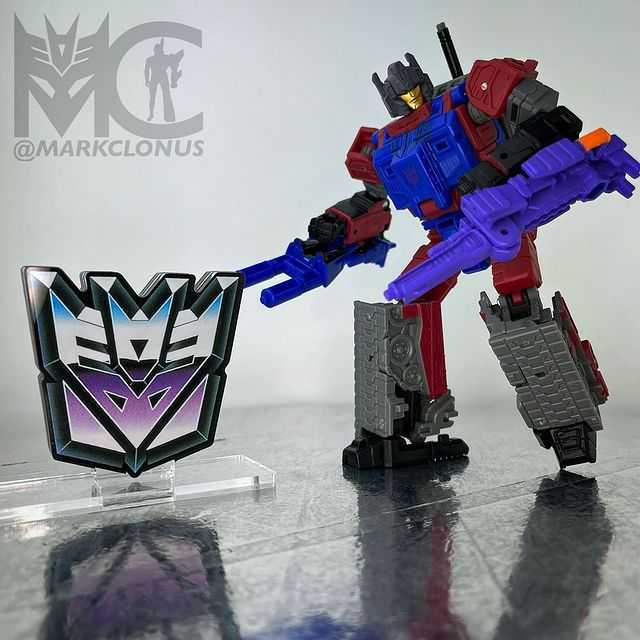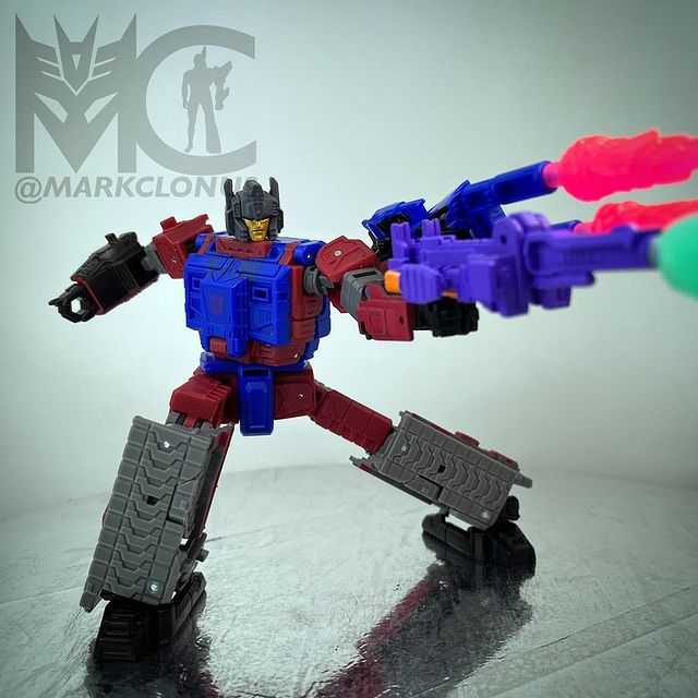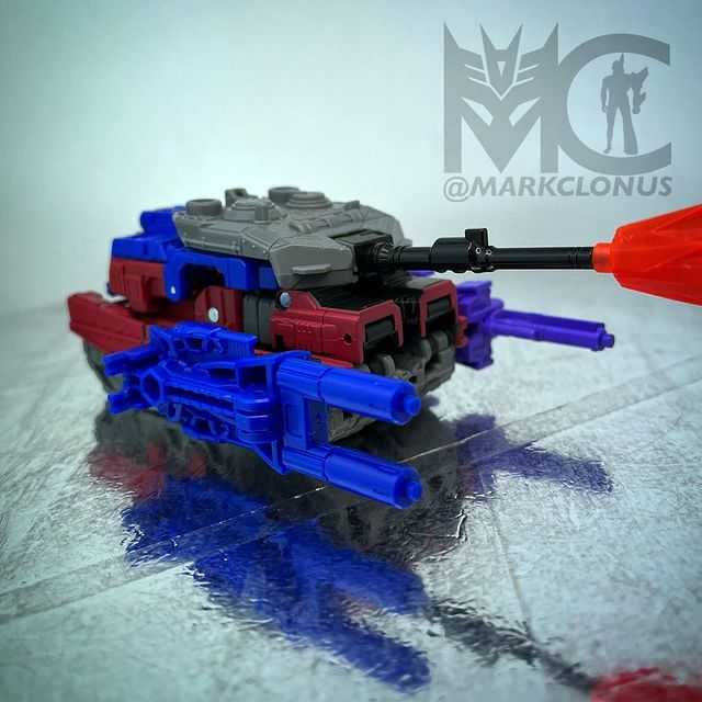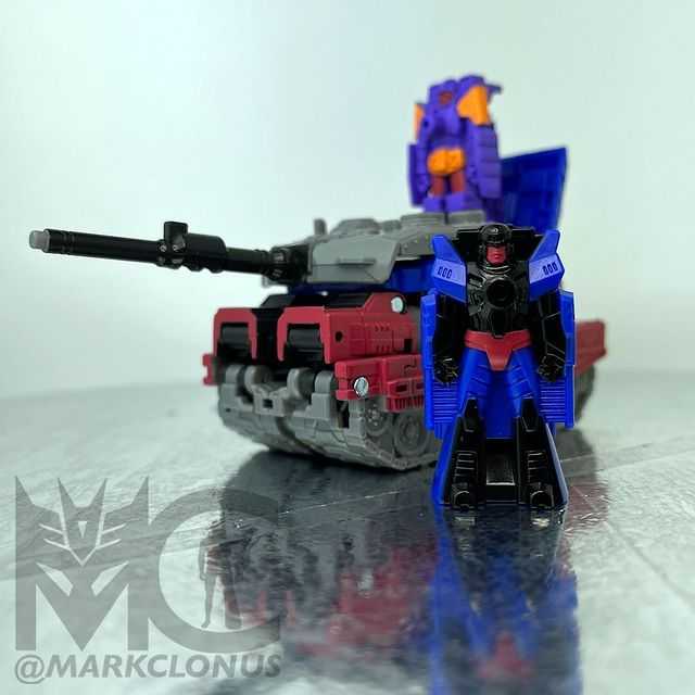 Its wild how these colors come off so bright in photos but in hand the deep saturated tones melt your heart. His face sculpt really sings up close and the details on the new molded Target Masters make this guy a must have. He has multiple blast compatible weapons and movable gun barrel turret.