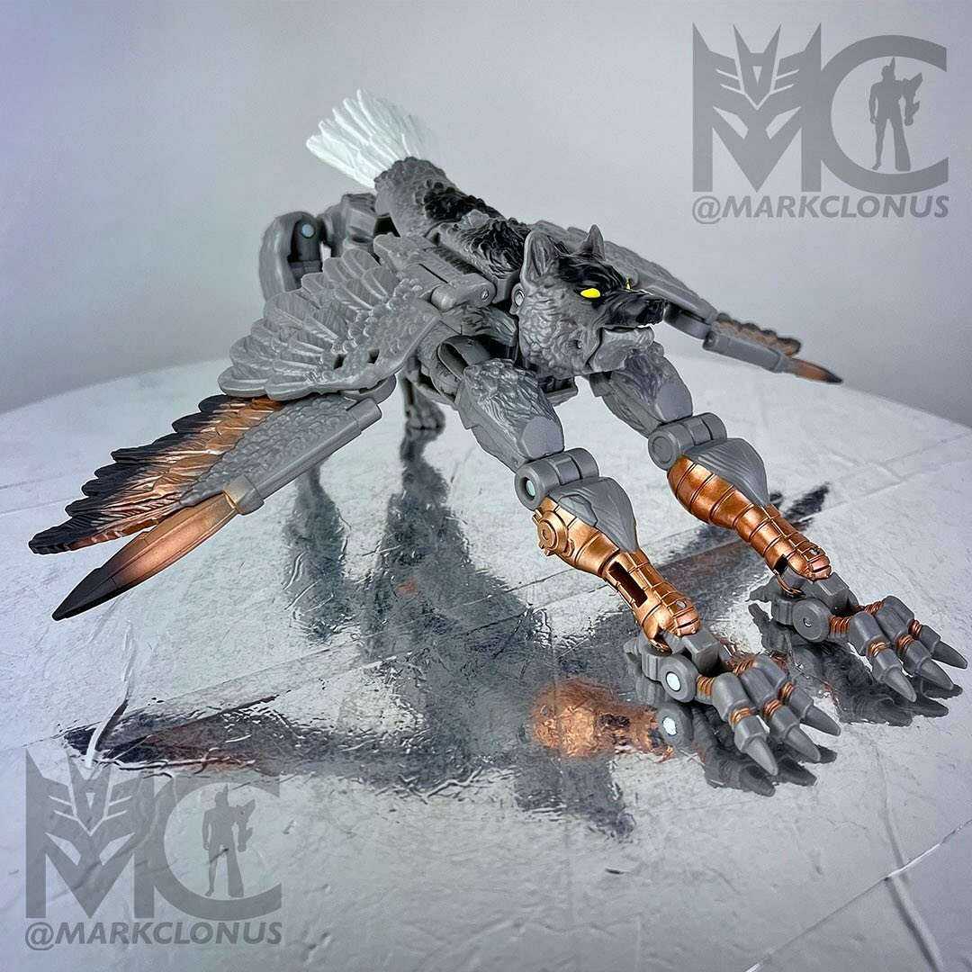 As you may know, Silverbolt is a fusion of a wolf and an eagle. All of our beast modes since our Kingdom series have leaned more towards realistic animal sculpts. It still fascinates me today how well the sculpted details translate from sculpt to plastic. So take an extra look at these fine feathers and marvel at the somewhat more werewolf face; the yellow-eyed staredown will give you the willies, I promise!