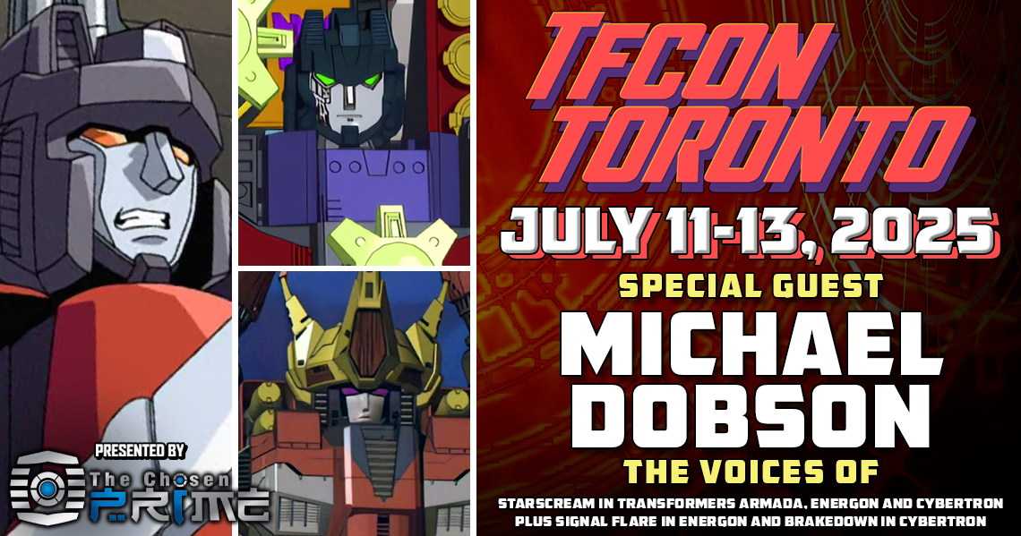 TFcon is very pleased to welcome Michael Dobson the voice of Starscream in Transformers Armada, Energon and Cybertron plus Signal Flare in Energon and Brakedown in Cybertron as a guest at TFcon Toronto 2025. Michael will be taking part in a Q&A panel and autograph sessions at Canada’s Premiere Transformers Collectors Event all weekend long. Presented by The Chosen Prime. Tickets still available at www.tfcon.ca