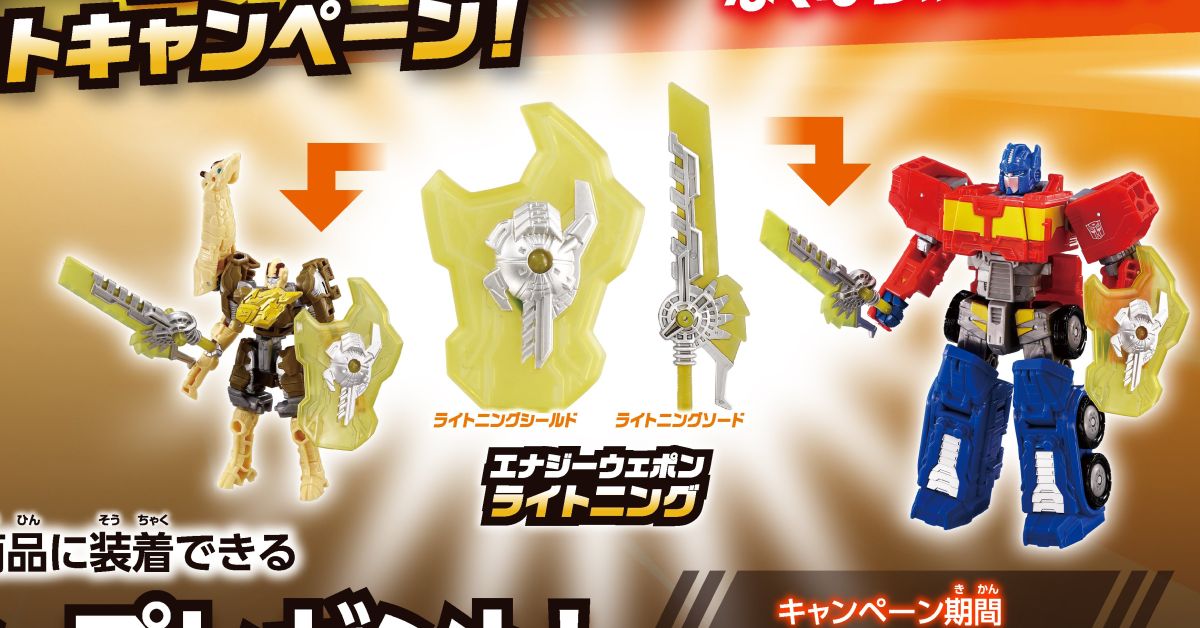 Toys R Us Japan has a reveal for their exclusive Transformers Wild King Energy Weapon Giveaway running until to May 12, 2025. Fans who purchase 5,000 yen / $35 USD or more on Wild King products at participating stores, will receive a free Lightning Shield & Lightning Sword Energy Weapon bonus accessory set. The 2013 Fall Of Cybertron Grimlock accessories have been updated from red to yellow with added paint apps. Shown here with Optimus Prime and Light Long. The exclusives are listed on the site as limited to 4,000 sets distributed to all stores, until they run out. Read on to see the translated details with participating store in Japan. Transformers Wild King Energy Weapon Giveaway! Purchase Transformers Wild King products totaling 5,000 yen or more (tax included)Can be attached to Transformers Wild King related products”Energy Weapon ” (Lightning Shield & Lightning Sword Set) Giveaway! Implementation period – 4/26 (Sat) ~ 5/12 (Mon) *Ends while stocks lastAv <br> See more at https://tformers.com/54890 <br>